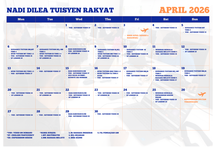 JADUAL AKTIVITI BULAN APRIL 2O26